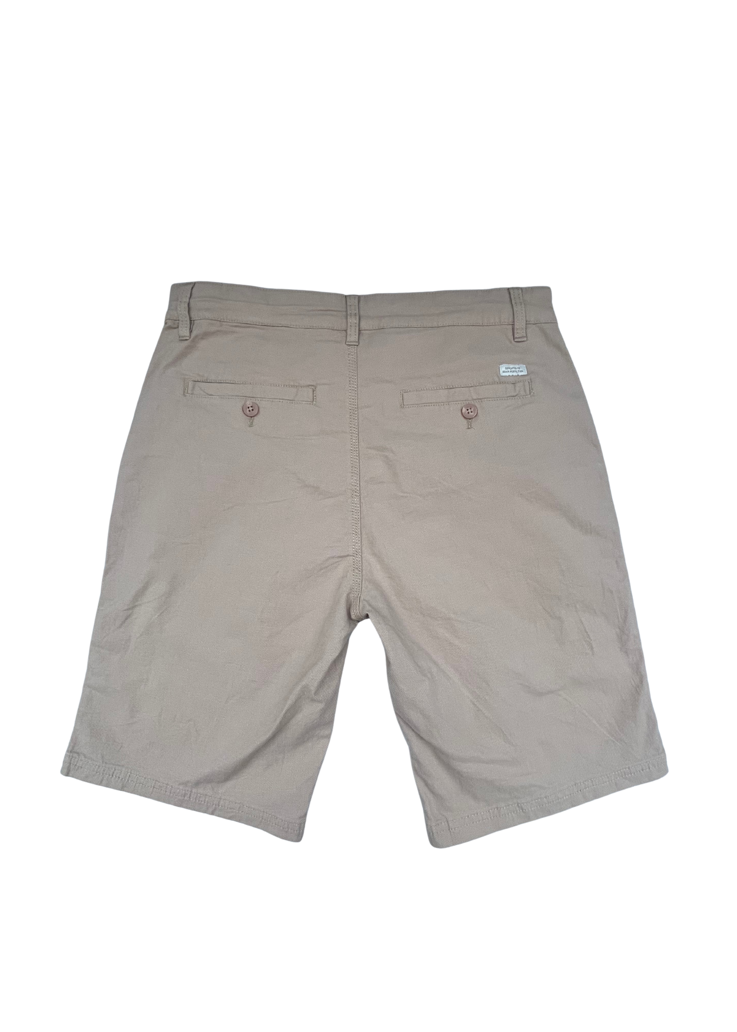 These Blend Mason Shorts feature a regular waist with button and zip closure for a secure fit. Available in blue or beige, they include belt loops and four pockets, combining classic style with practical functionality.