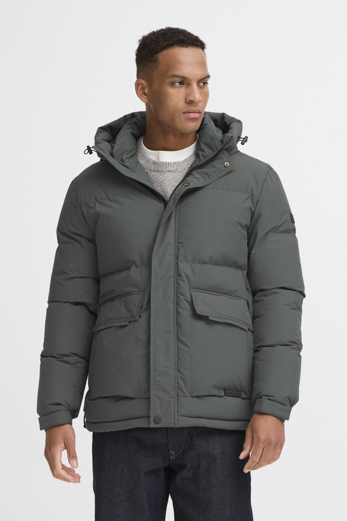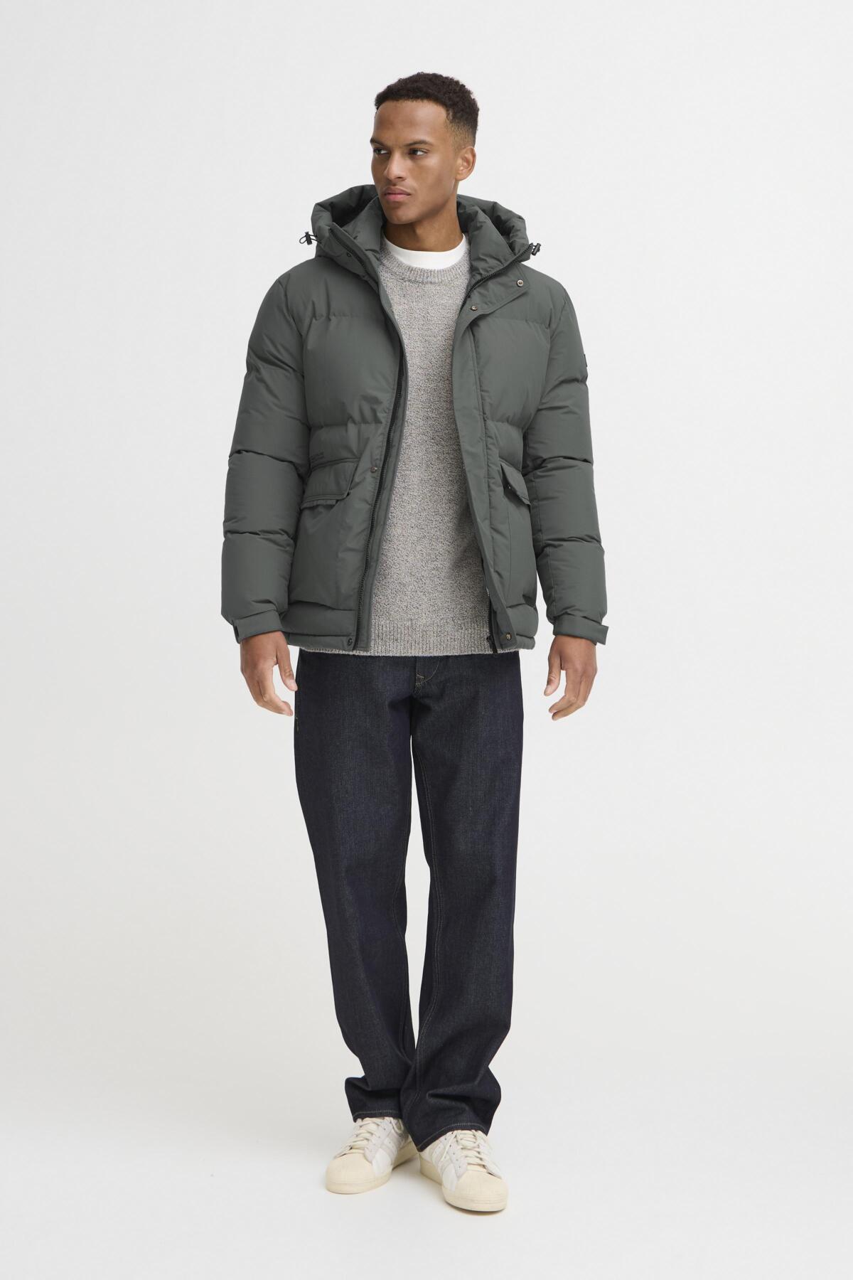 The Blend Iron Jacket combines contemporary design with practical functionality. This men's puffer jacket features a protective hood and long sleeves for year-round versatility. The concealed zip-down front creates a streamlined silhouette, while generous side pockets offer convenient storage for essentials.