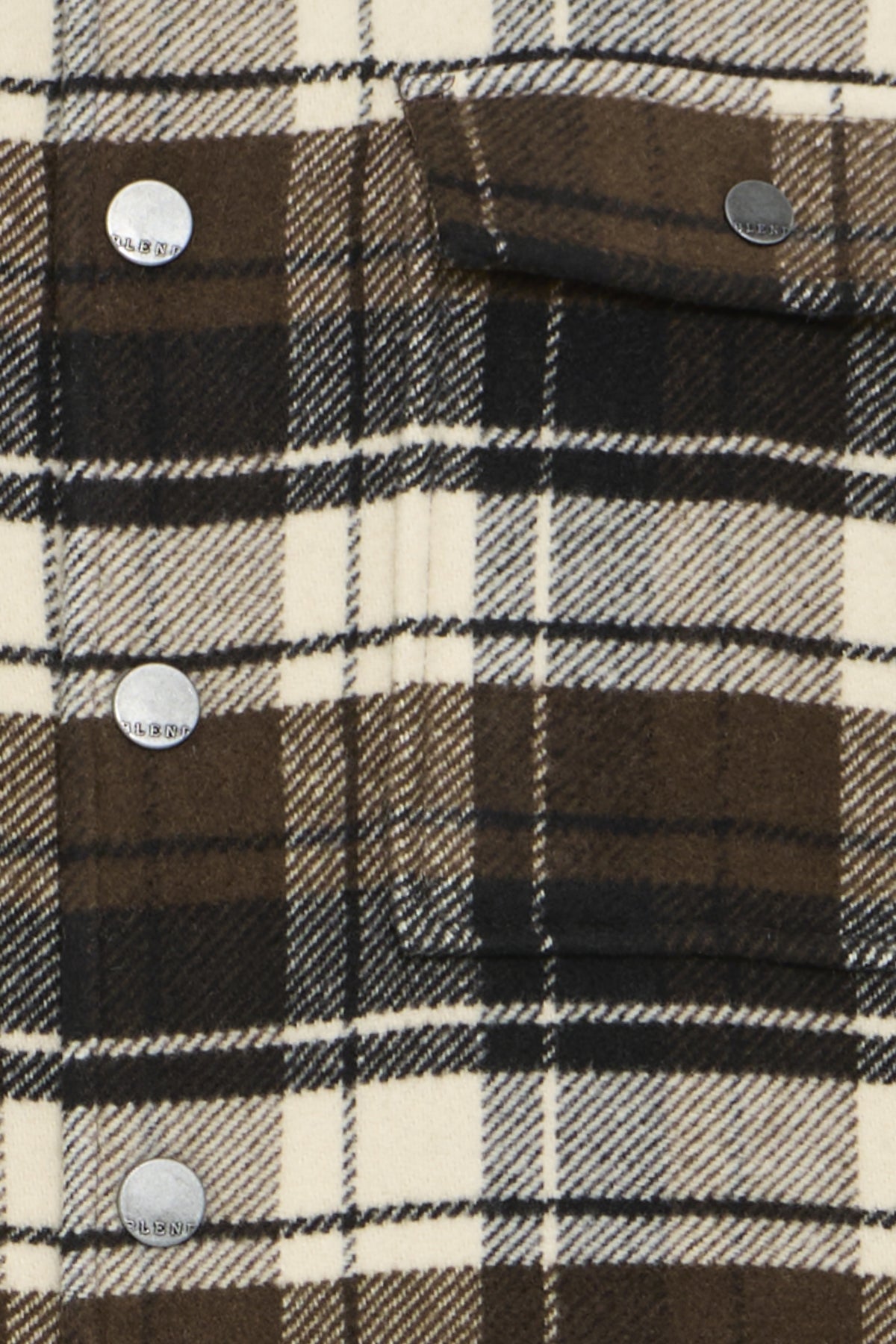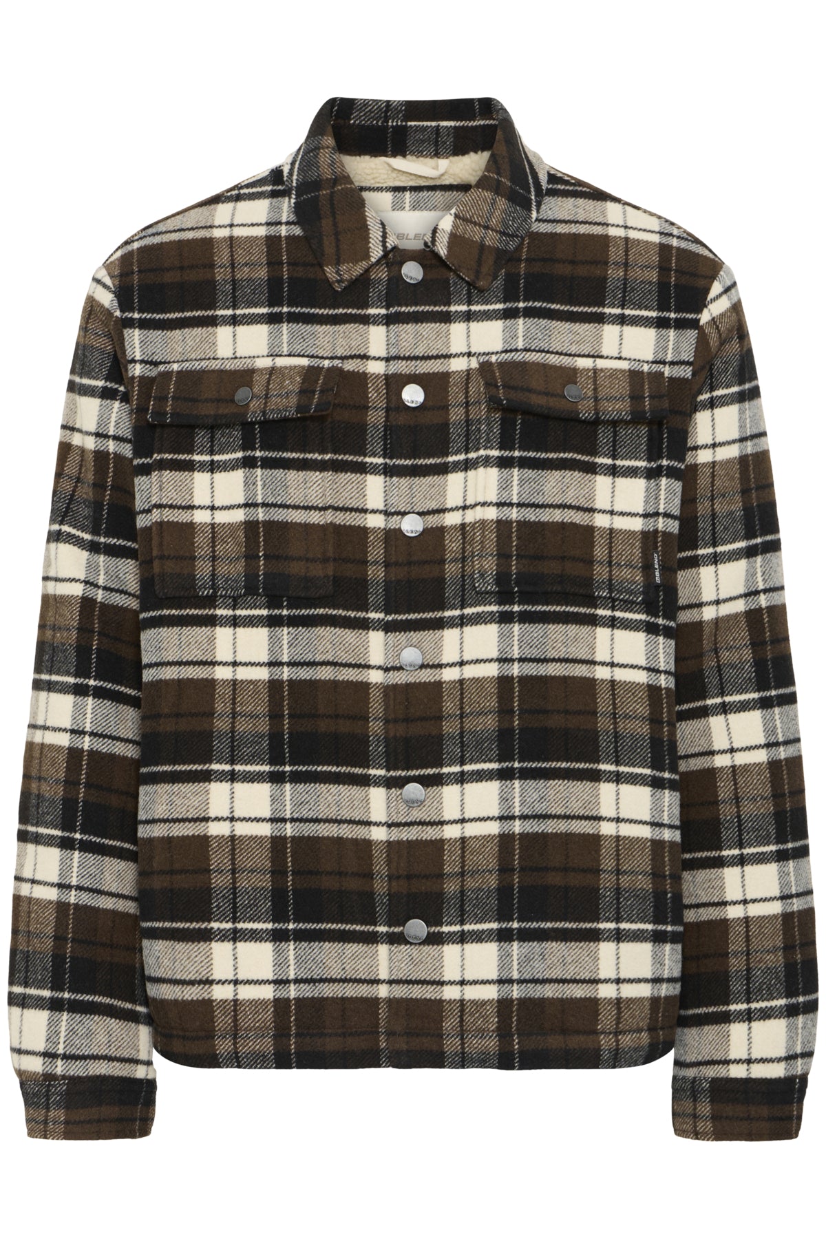 This Blend Slate long-sleeve men's jacket features a classic black check pattern. The structured collar and front button closure provide a polished silhouette, while dual chest pockets offer practical storage without compromising the clean aesthetic.
