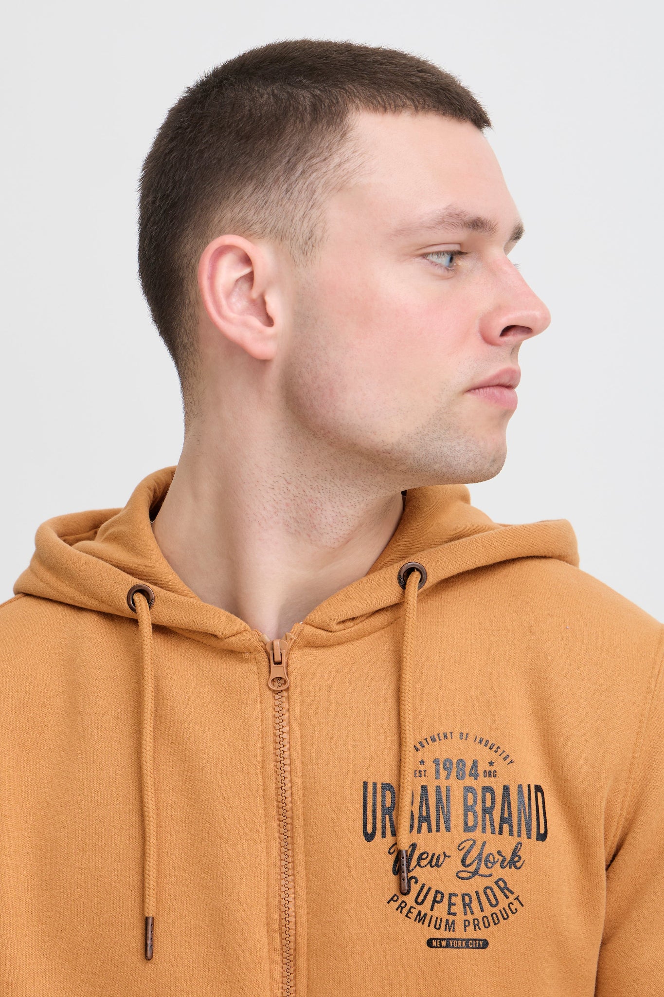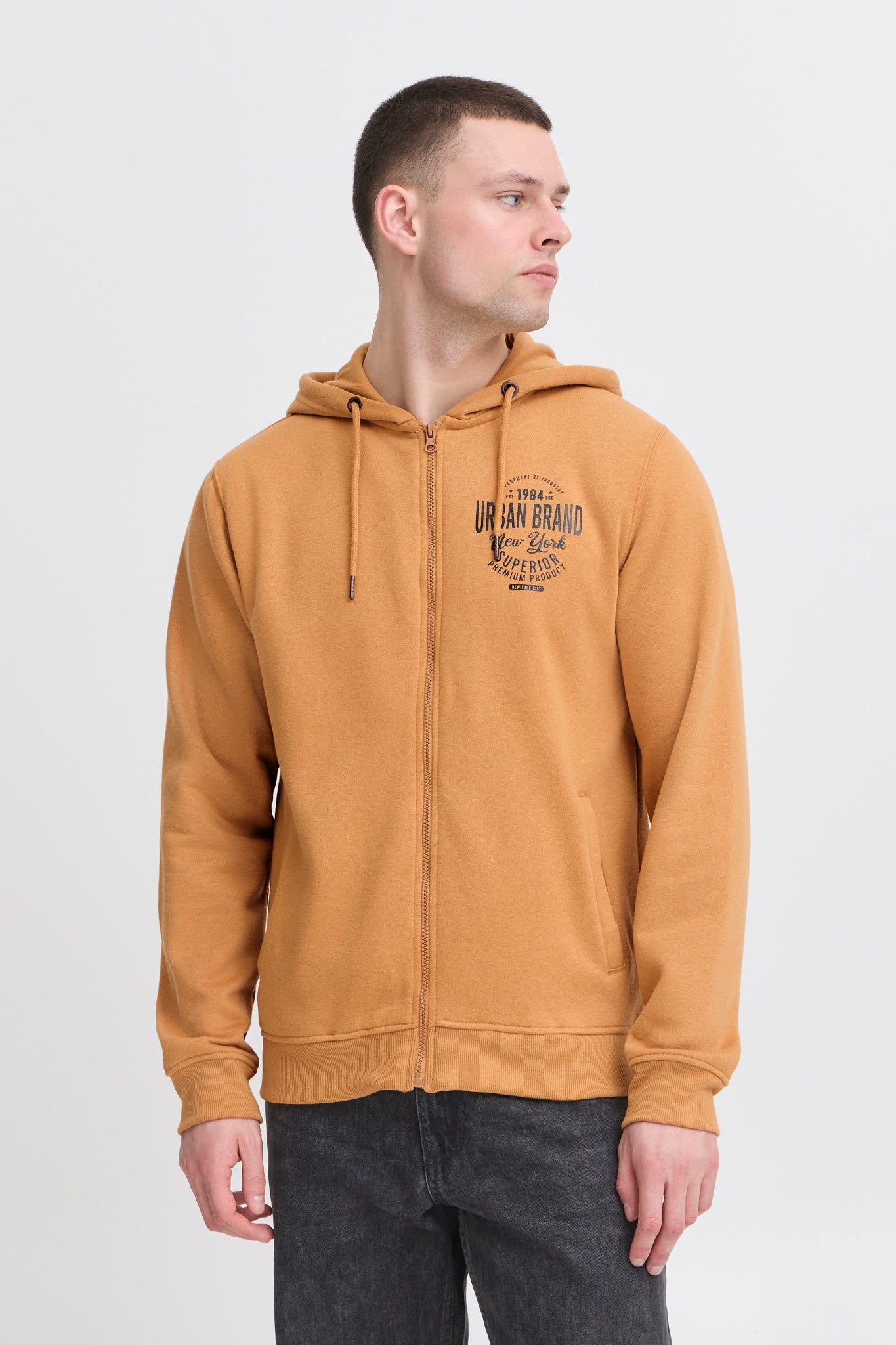 The Blend Jarl Sweatshirt combines vibrant orange colour with practical design features, including a hood with adjustable drawstring and a full zip-down front for versatile wear. Its long sleeves and cuffed hem and sleeves provide a snug fit, while the front logo adds a subtle branded touch.