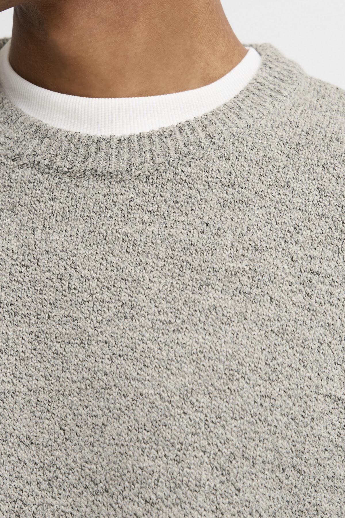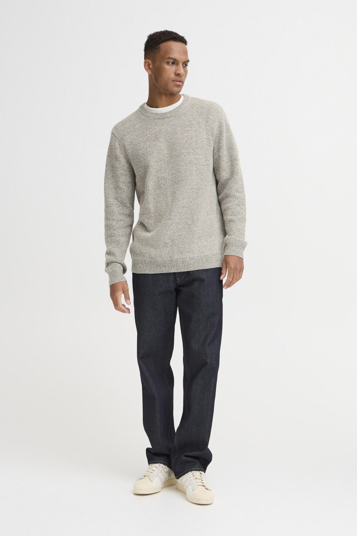 The Blend Crockery Pullover delivers understated sophistication with its refined crockery melange finish. This men's sweatshirt features a structured silhouette enhanced by ribbed detailing at the neckline, cuffs, and hem. The neutral melange tone offers versatility, pairing effortlessly with both casual and smart-casual wardrobes.