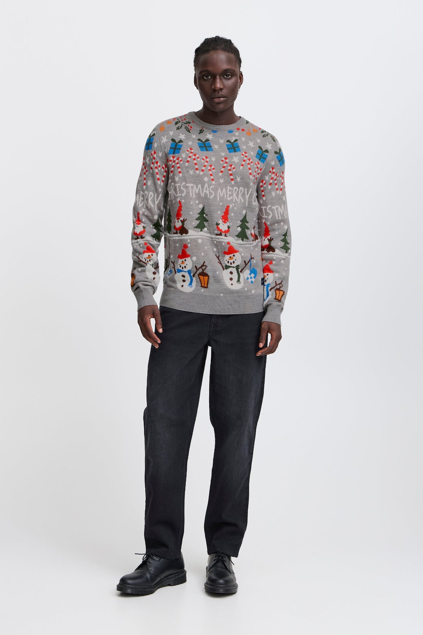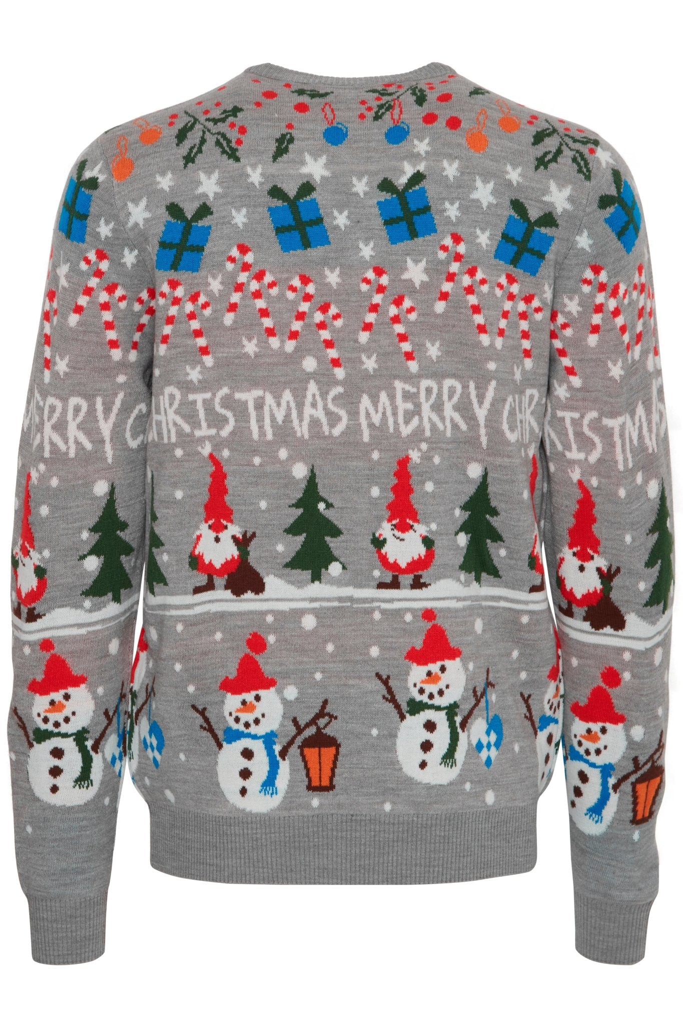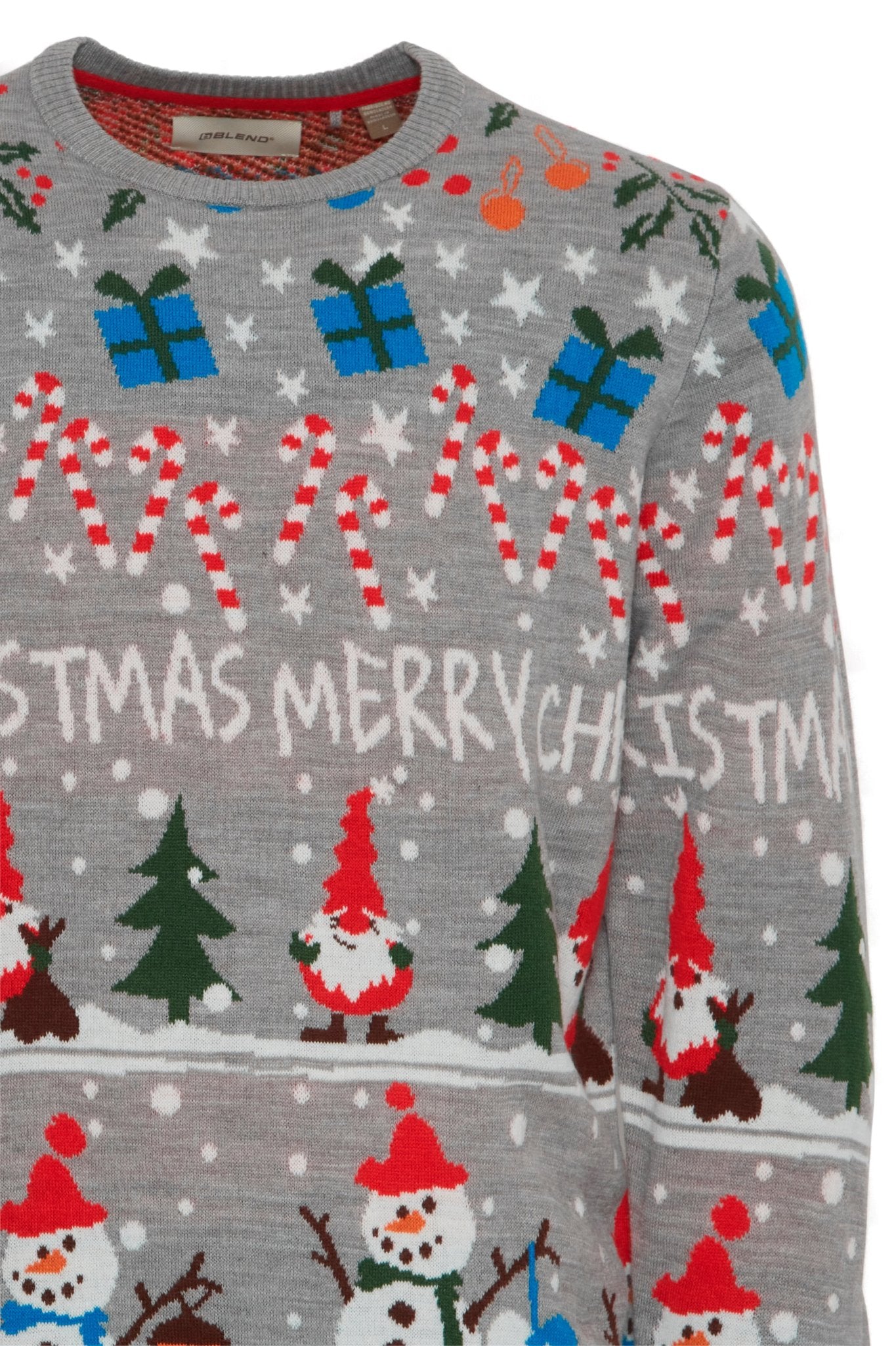 Stay cozy and festive with our Blend Christmas Pullover. Made with a relaxed fit and cuffed sleeves and hem, this grey sweater boasts a fun and colourful holiday print. Perfect for spreading holiday cheer in style.