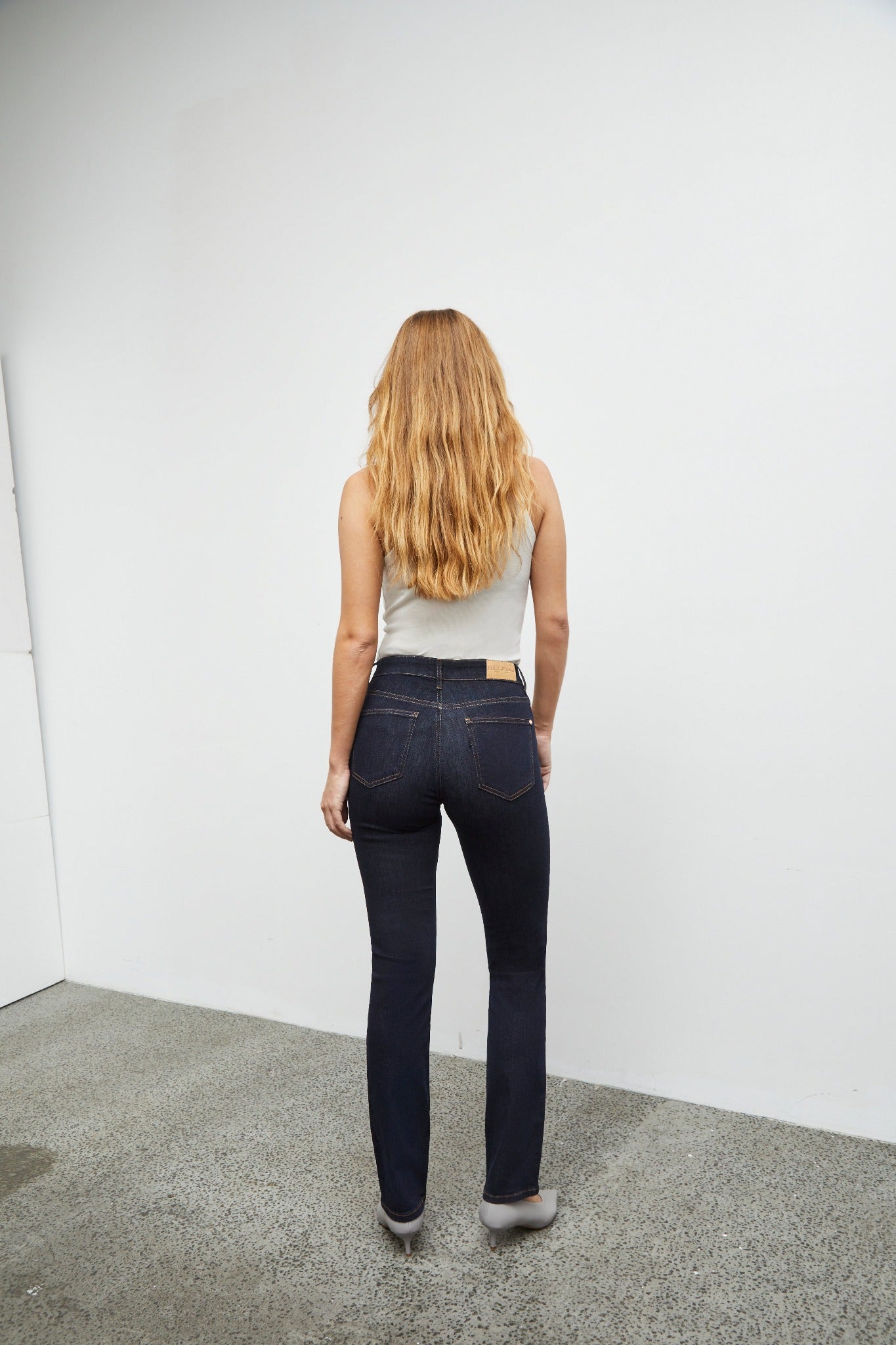 The Pulz Emma Jeans are crafted with a high waist and 34 inch straight leg cut, these jeans provide a flattering fit for all body types. The dark blue wash with brown stitching adds a touch of sophistication to any outfit. Perfect for any occasion, these full-length jeans are a must-have in your wardrobe.