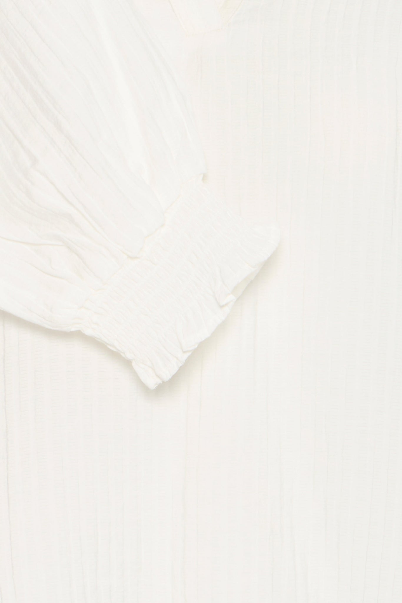 The Pulz Isabelle Blouse offers a clean and classic look with its white colour and v neckline. The long cuffed sleeves add sophistication, while the relaxed fit ensures comfort. Its medium length is versatile, making it perfect for any occasion.
